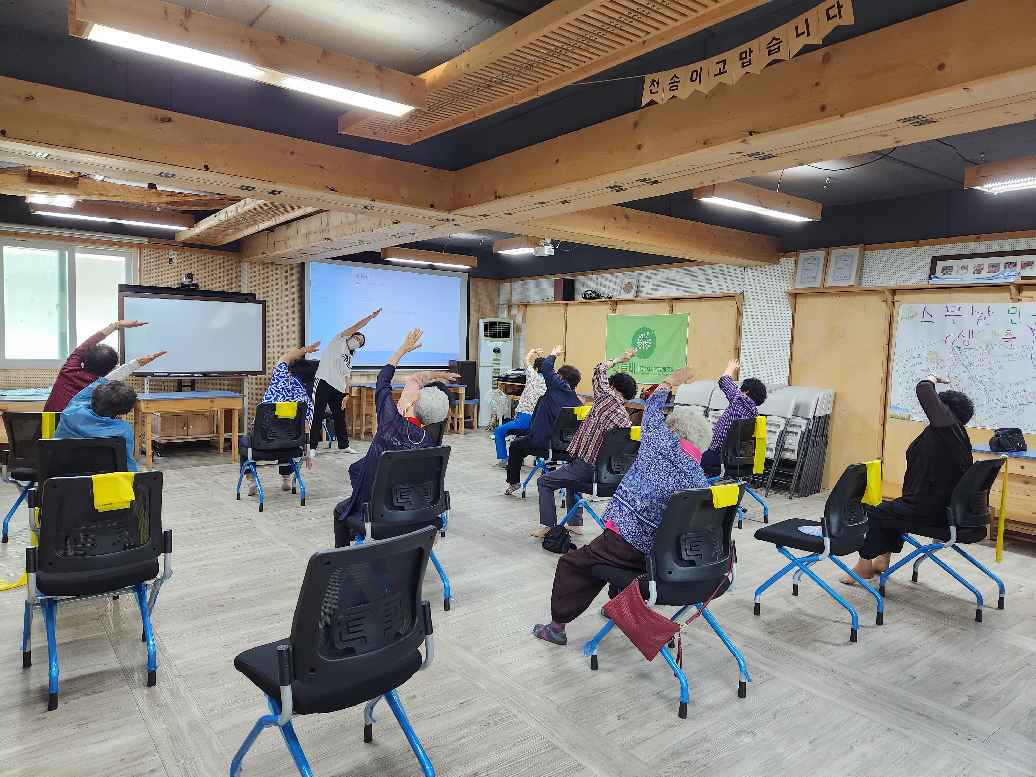 새로운 사람들과 인사를 나누고, 서로의 안부를 묻고, 건강반 이름도 정한 어르신들은 웃음 가득한 얼굴로 힘차게 운동을 시작합니다.