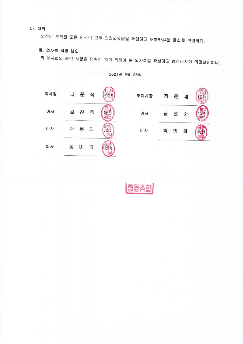 [2021-09] 정기이사회 결과보고