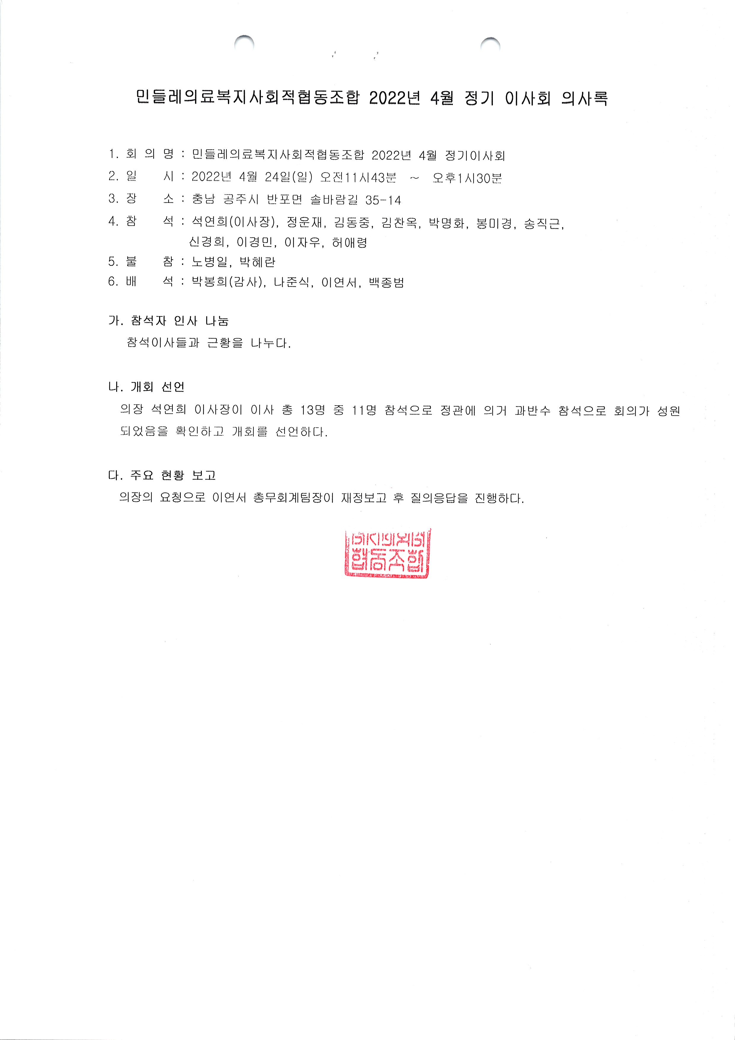 [2022-04] 정기이사회 결과보고