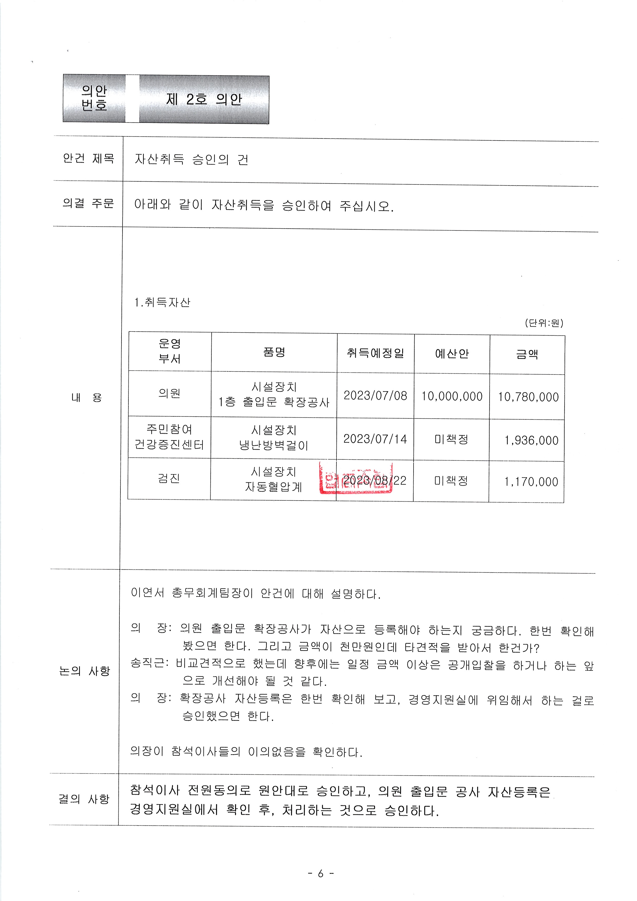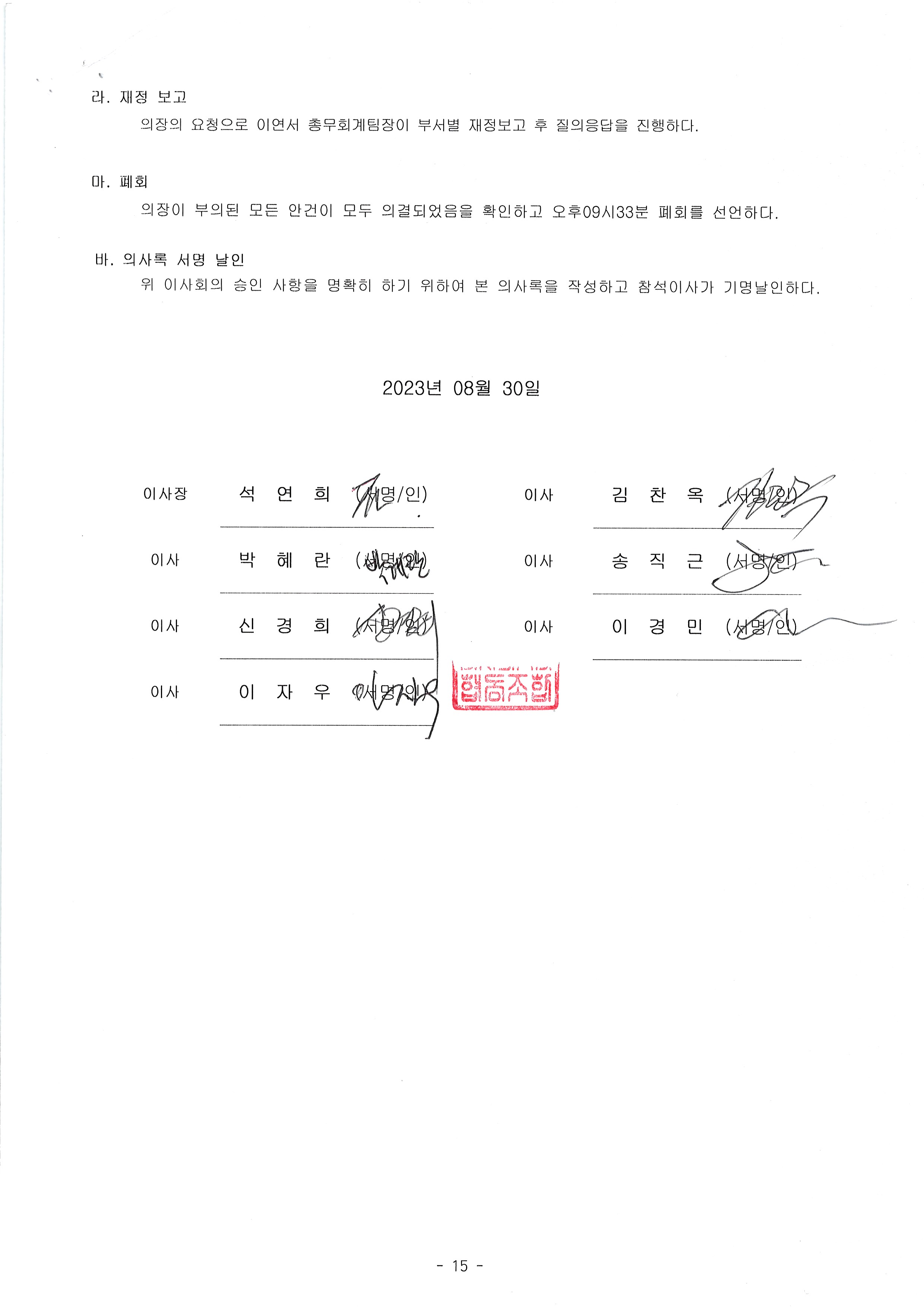 [2023-08] 정기이사회 결과보고