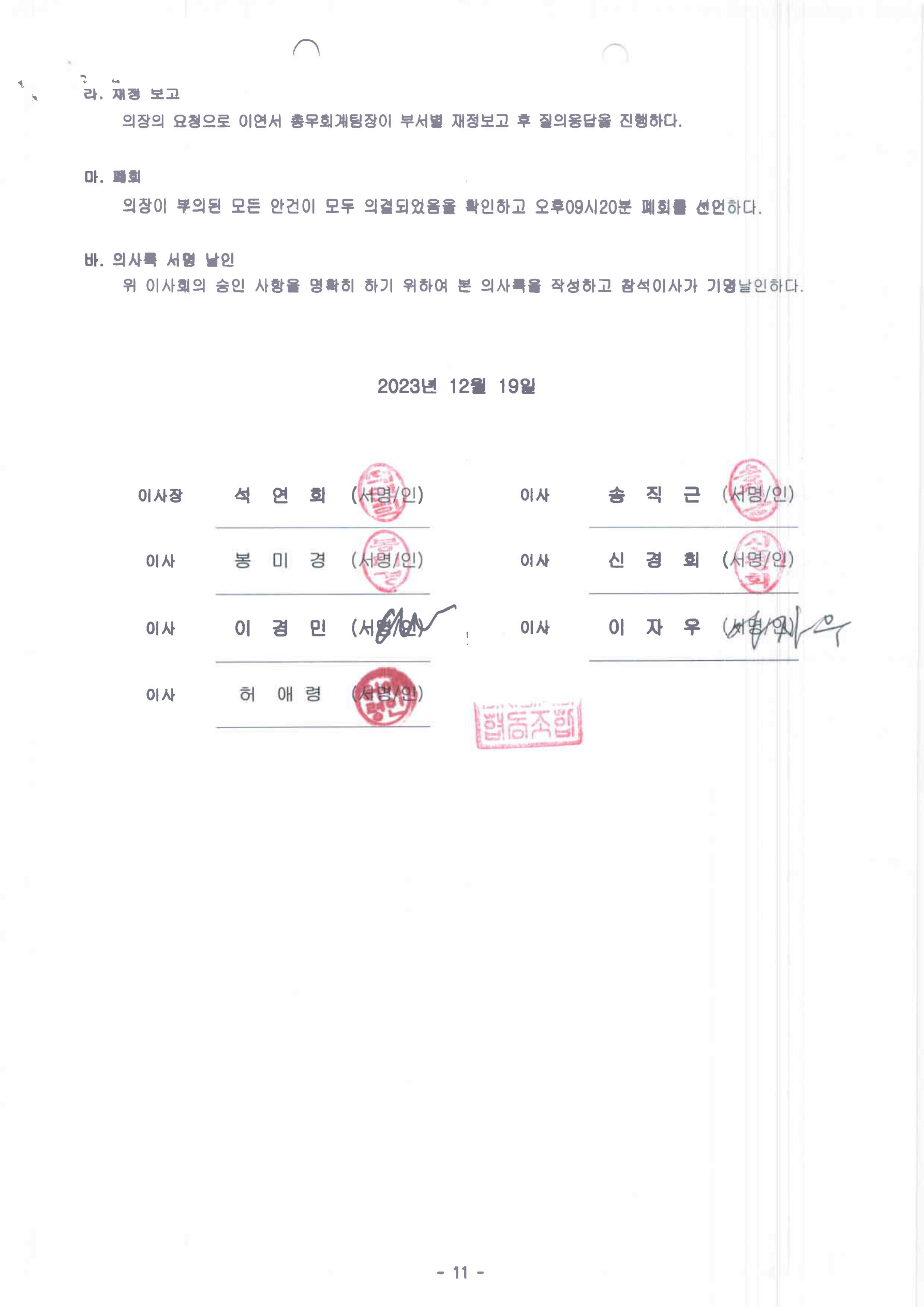 [2023-11] 정기이사회 결과보고