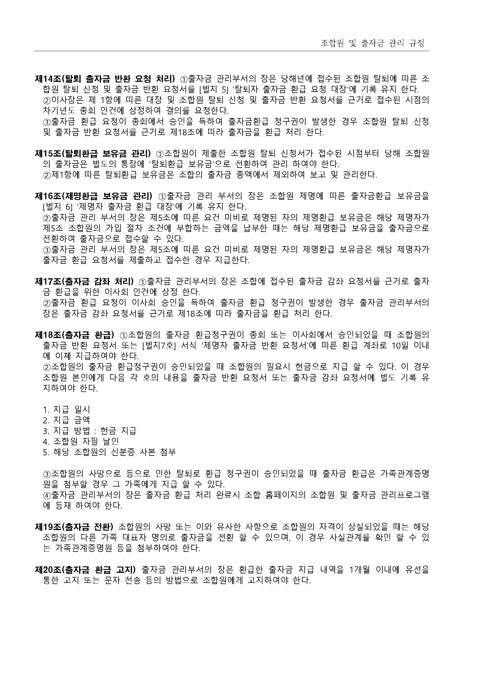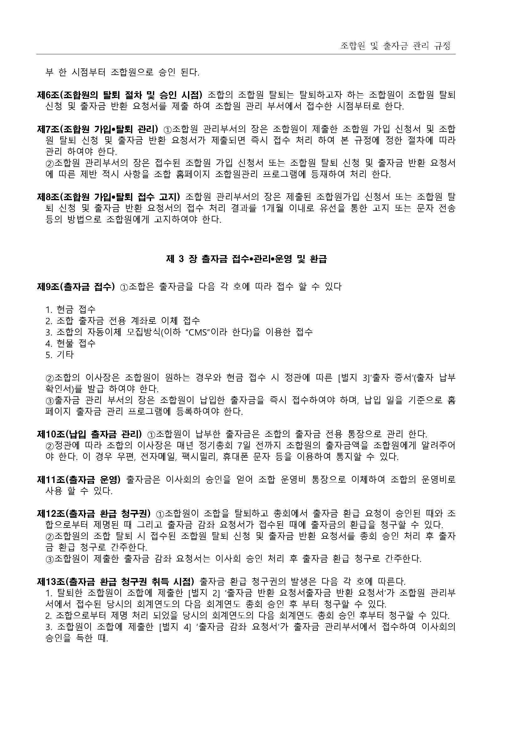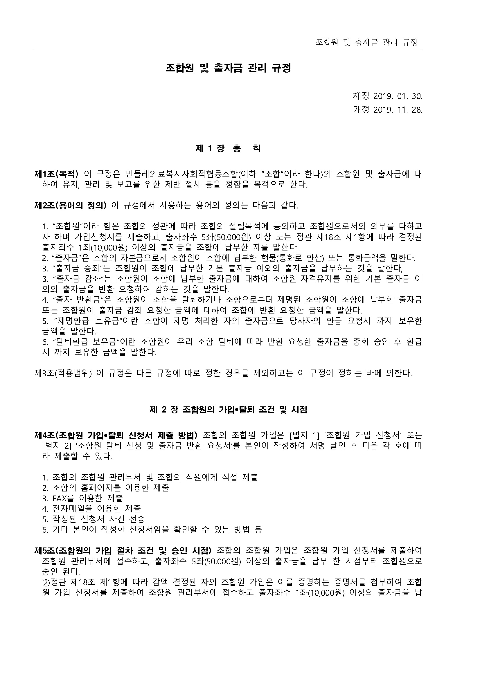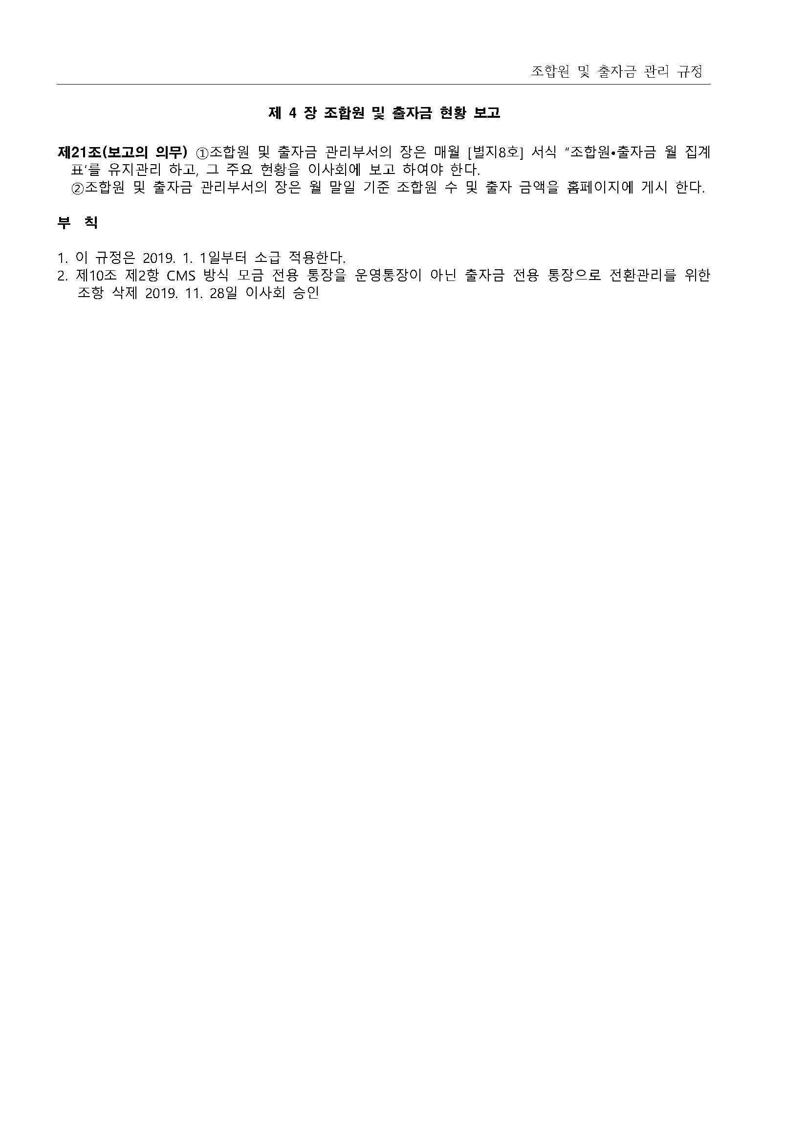 13.조합원 및 출자금 관리 규정(2019.11.28 개정)