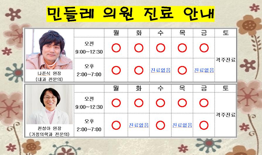 둘째주(11일) 토요일은 나준식 원장님이 근무하시고,