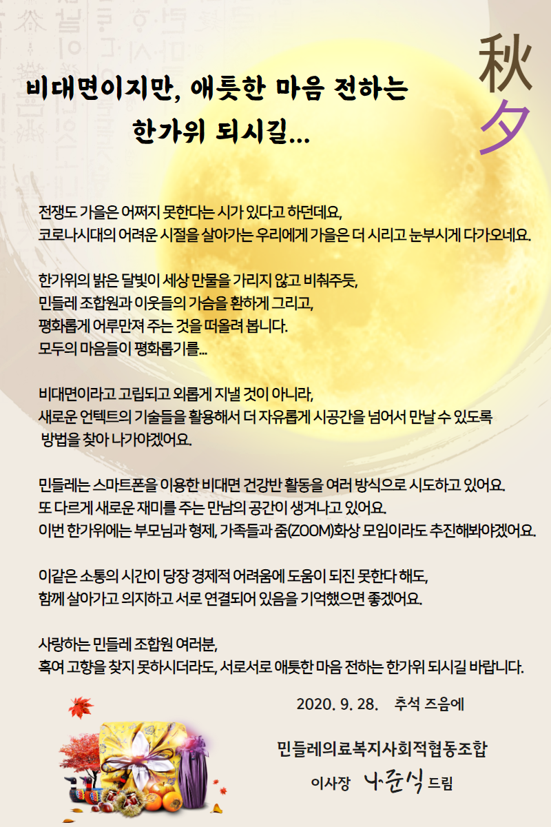 [이사장 추석인사] 비대면이지만, 애틋한 마음전하는 한가위 되시길