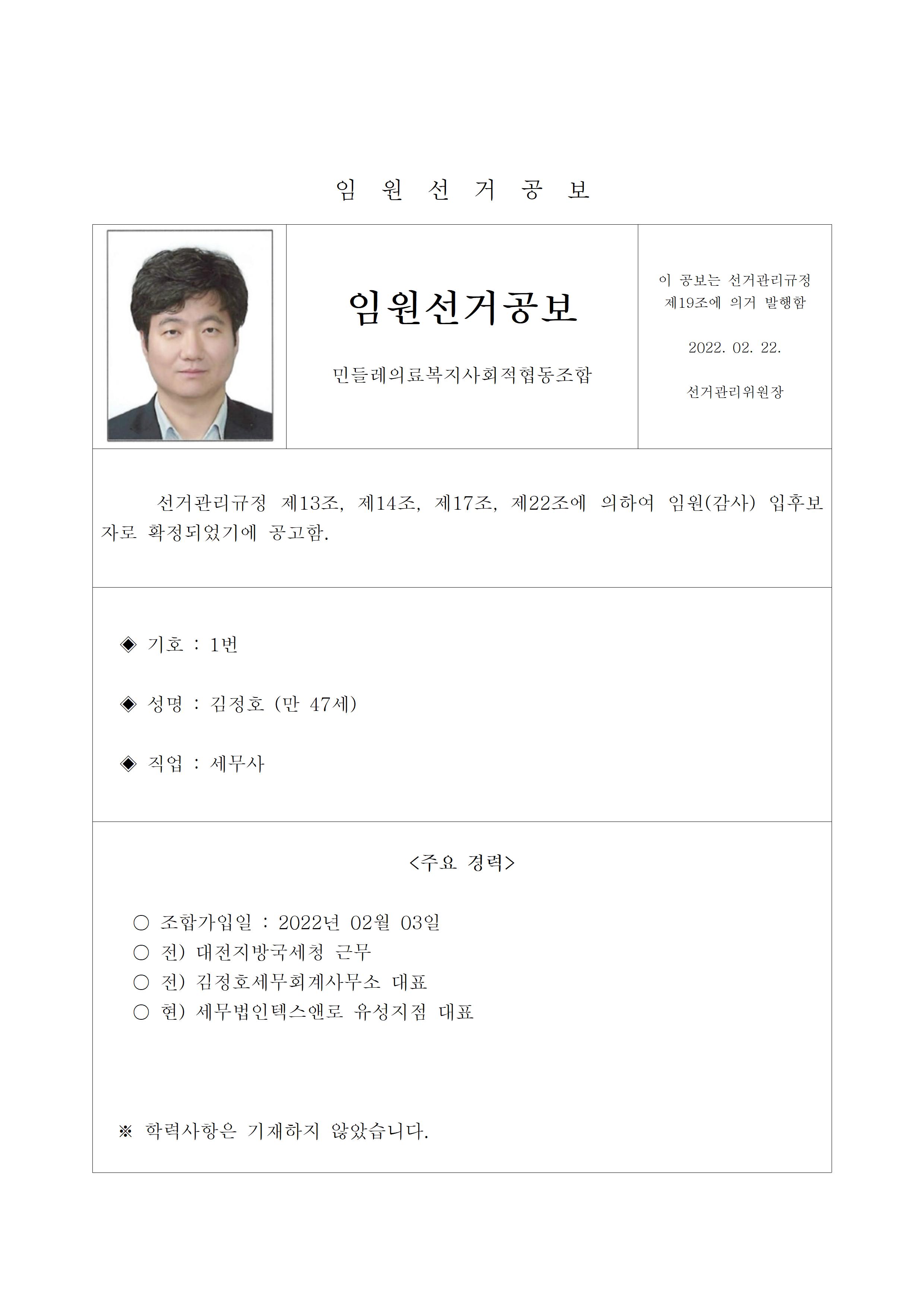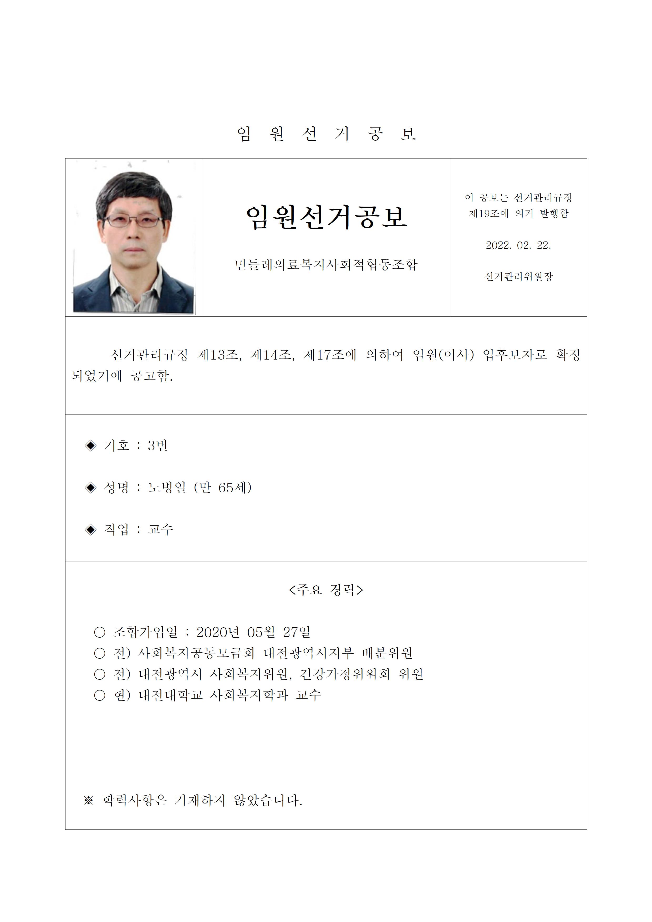 2022년 민들레의료사협 임원(이사, 감사)선거 공보