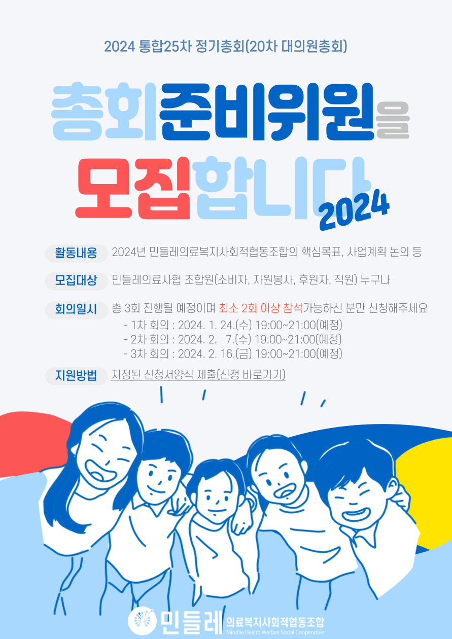 2024 민들레의료복지사회적협동조합 총회준비위원 모집