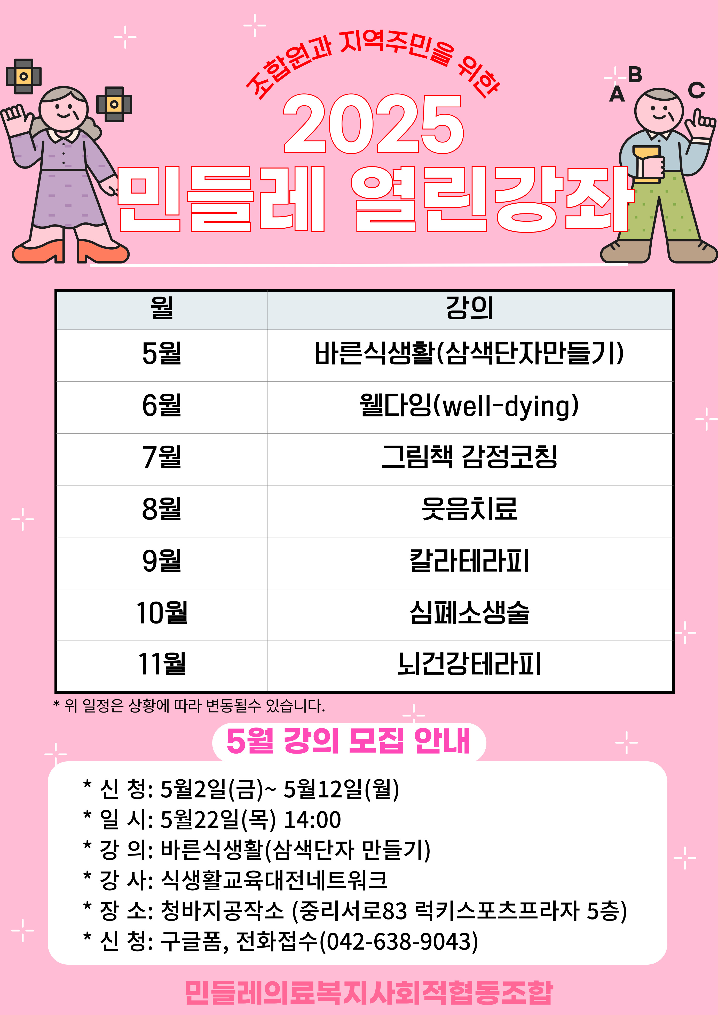 민들레에서 조합원 및 지역주민을 대상으로 한 '열린 강좌'가 시작됩니다!