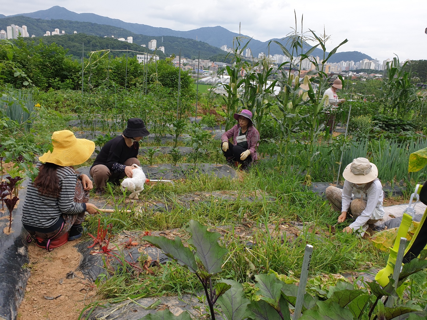쑥쑥자란 농작물을 수확(방울토마토,쌈채소,고추)하고 같이 쑥쑥자란 잡초도 뽑고 수확의 기쁨을 안고 가는 즐거운 시간이었으며, 수확한 쌈채소등을 마을식당 메뉴에 넣어 손님들과 같이 나누어 먹는 기쁨도 함께 얻음.
