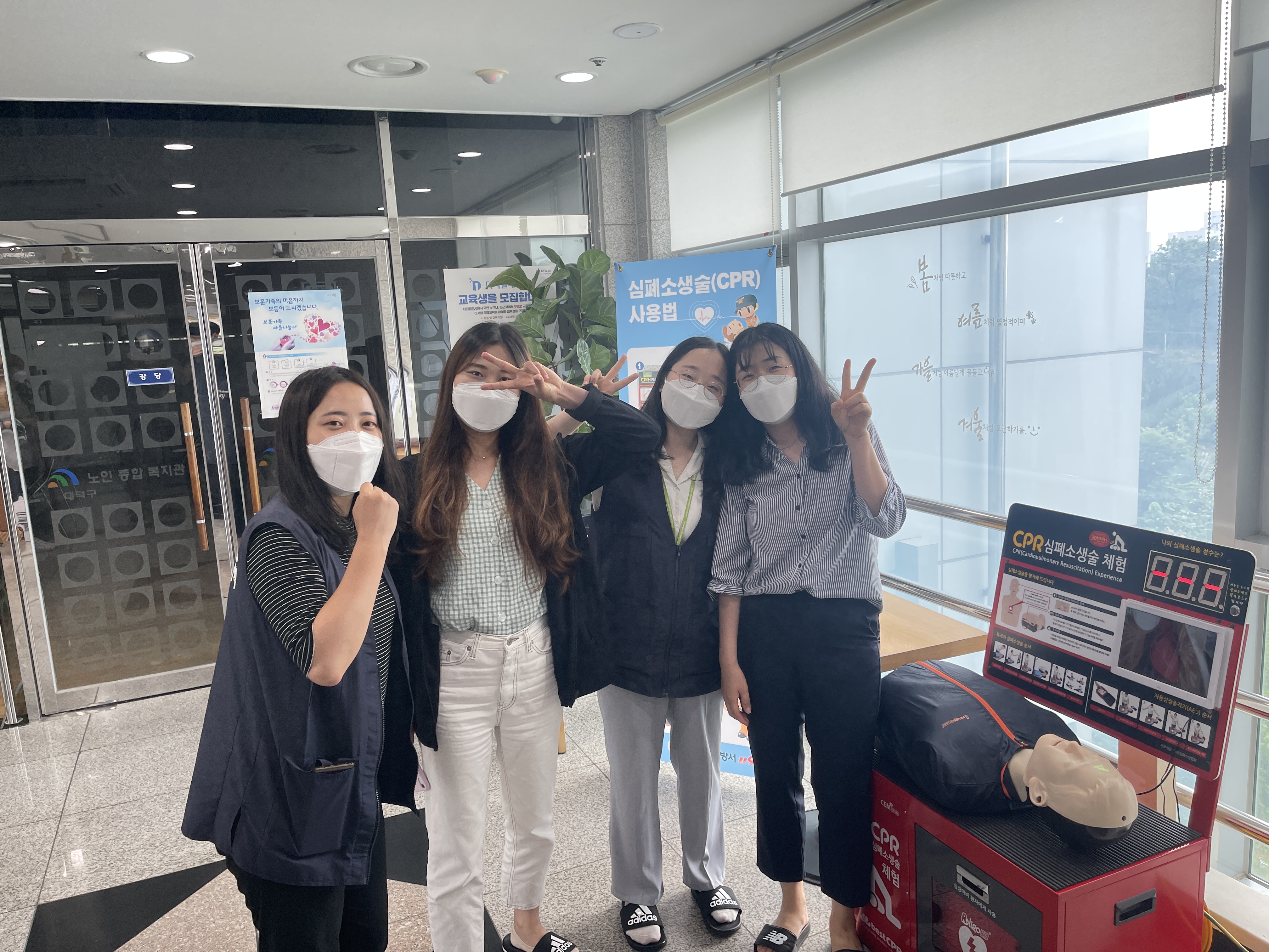 대덕소방서에서 CPR심폐소생술 체험부스를 제공하여 직접 심폐소생술을 체험하고 건강반활동 및 일상생활을 할때 응급상황 발생시 효과적인 응급대처를 할 수 있도록 한다.