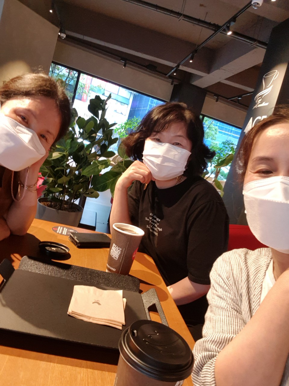 코로나로 인해 다 모이진 못했지만 오랜만에 도서관 봉사하고 차마시며 이야기도 하고...