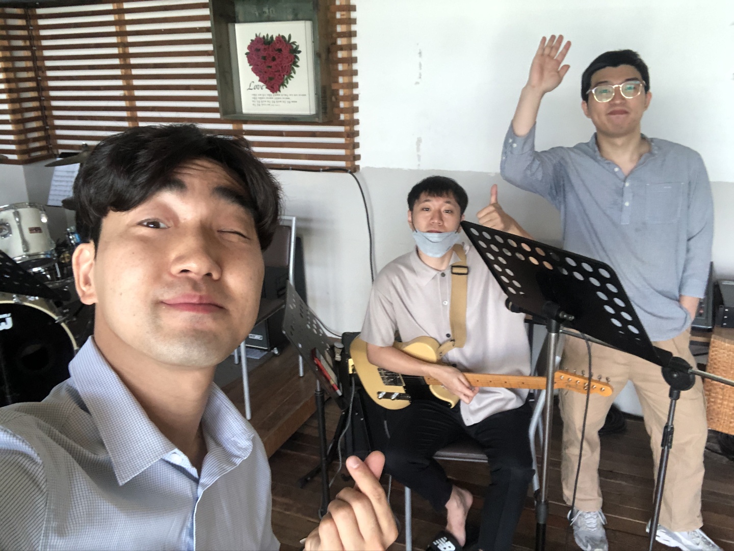 [4차 모임] 1. 두 번째 합주 진행 (드럼 : 권인호, 기타 : 배은열, 보컬 : 양현석) 2. 윤수일의 '아파트', 김수철의 '젊은 그대', 산울림의 '아니 벌써' 연습 3. 전체적 밴드 방향성을 훵크와 블루스 쪽으로 잡음