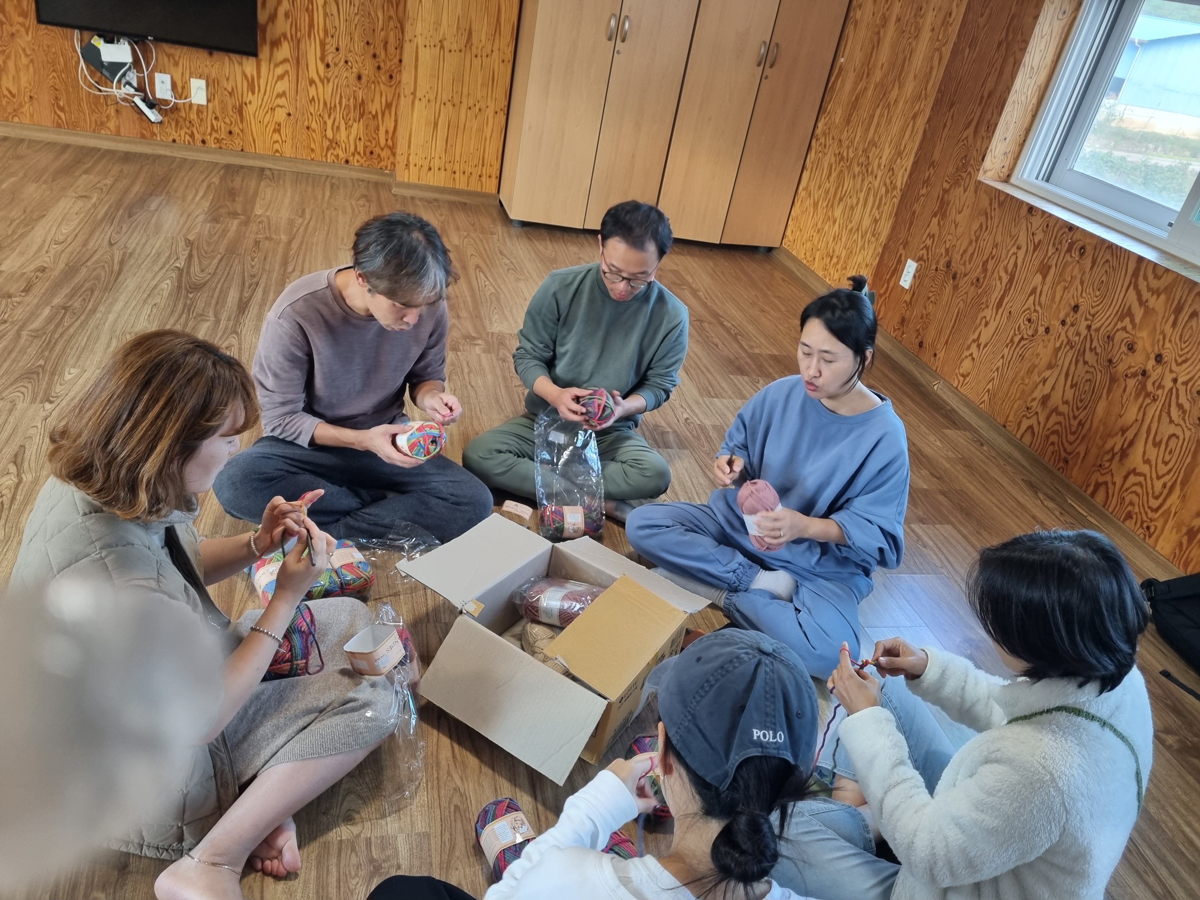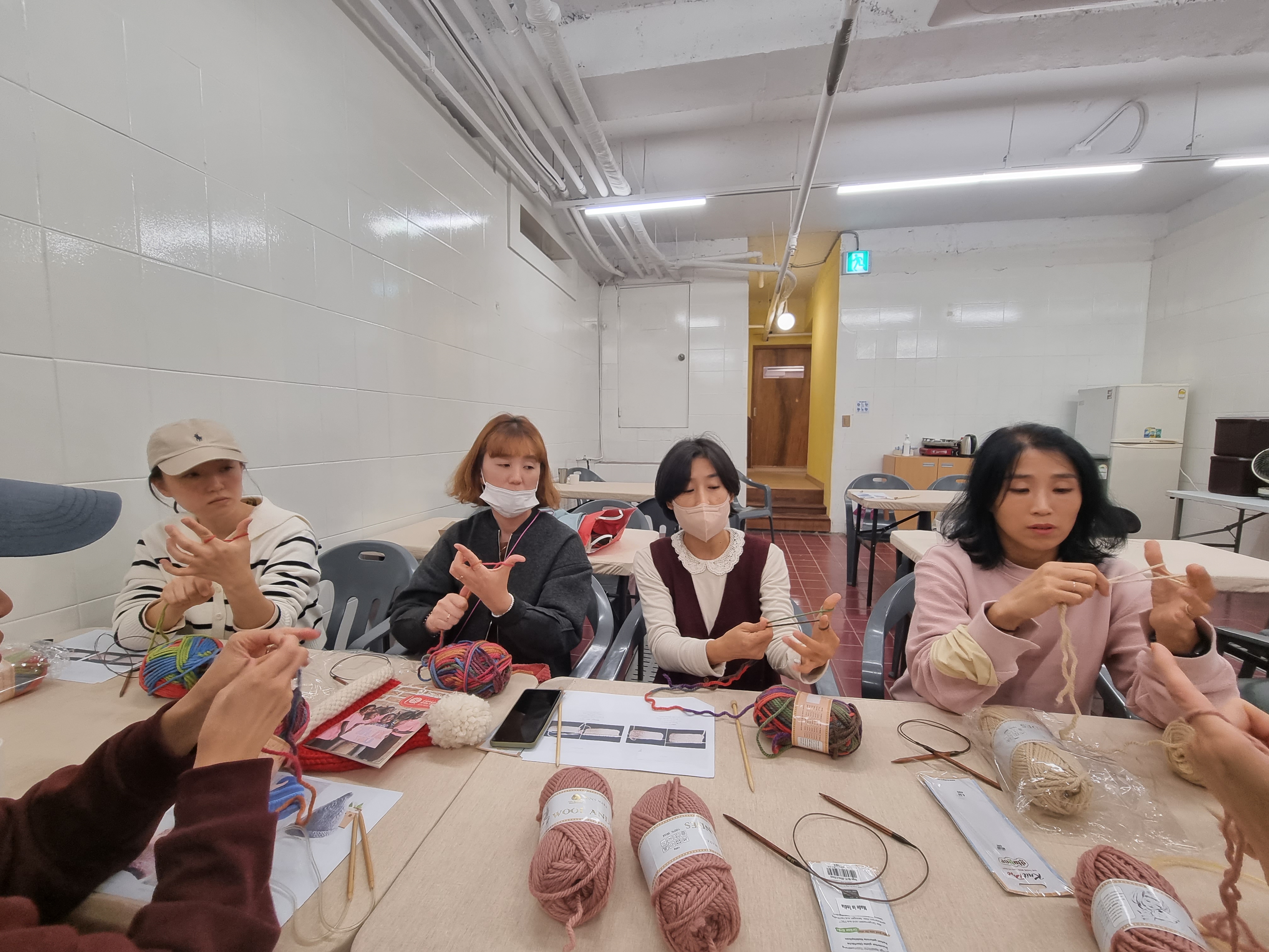 1. 추가구매한 대바늘 배부 2. 모자 뜨기 유형 알아보기 3. 안뜨기, 겉뜨기, 고무뜨기 등의 방법 알아보기 4. 모자, 목도리 등으로 작업 시작