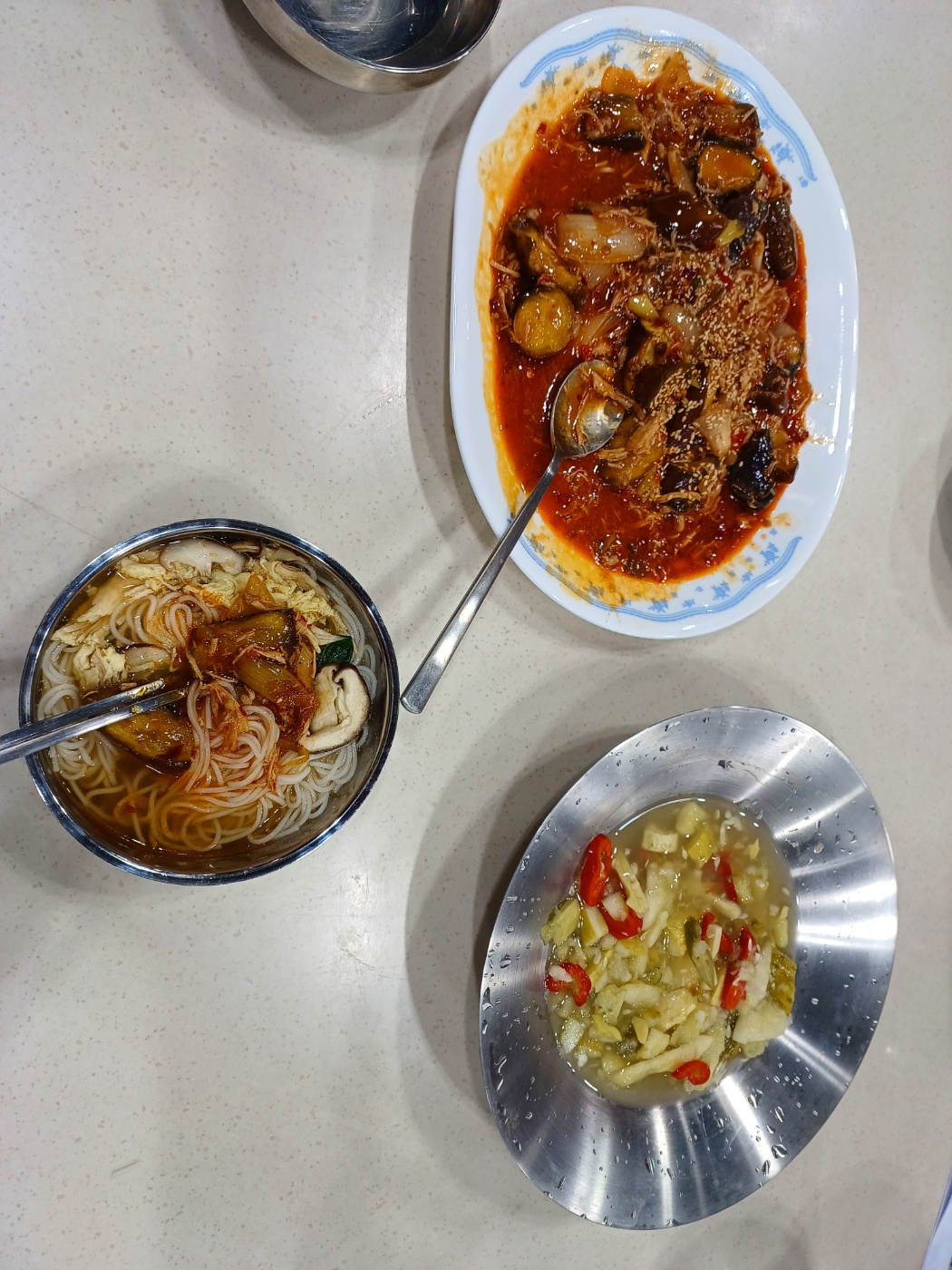 오늘의 요리: (기스면과 오이탕탕이, 어향가지) 연일 30°를 웃도는 삼복 더위에 주부들이 가스불 앞에서 요리하기 쉽지가 않지요.. 오늘은 시원하게 먹을 수 있는 오이탕탕이와 영양만점 어향가지, 닭가슴살과 육수를 이용한 기스면을 시식하고 모두들 집에 가서 해 먹는다고 새로운 각오를 하는 모습이었답니다.