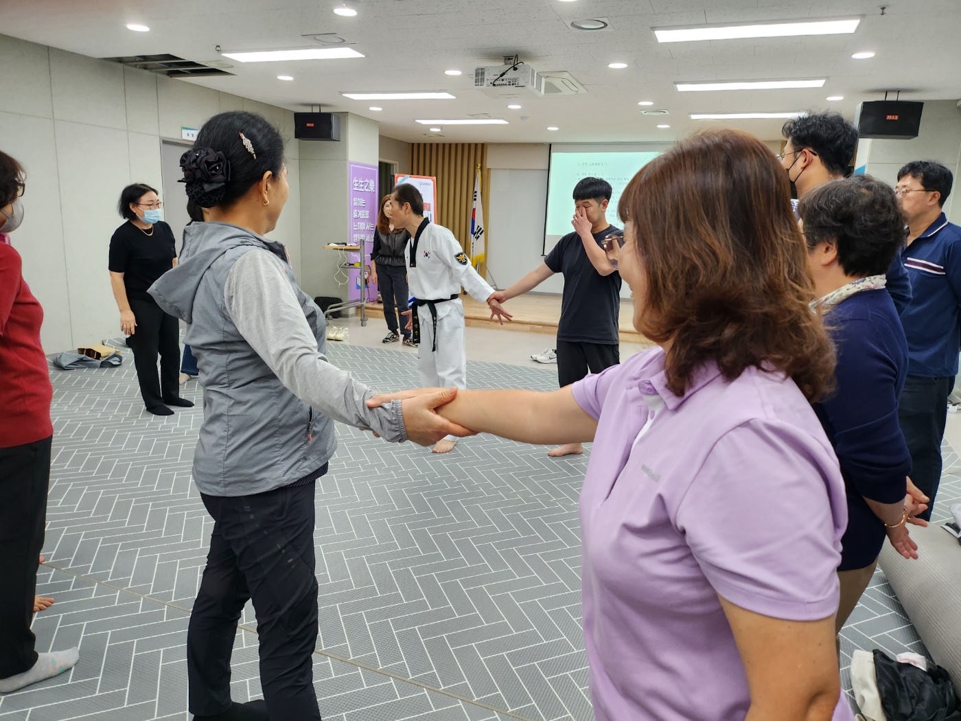 송촌주민자치회 주관으로하는 주민을 위한 호신술 강의에 건강가득듬북반도 참여해 배움