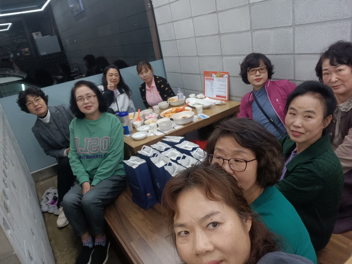 오랜만에 저녁시간에 건강반 모든인원이 식당에서 모임을 가졌어요 맛있는 낙지덮밥과 시원한 음료도 먹고 전원이 모였을 때 실키롤 케잌을 하나씩 준비하여 각자 가정에 돌아가 가족들과 맛있게 먹을수 있도록 하였답니다.