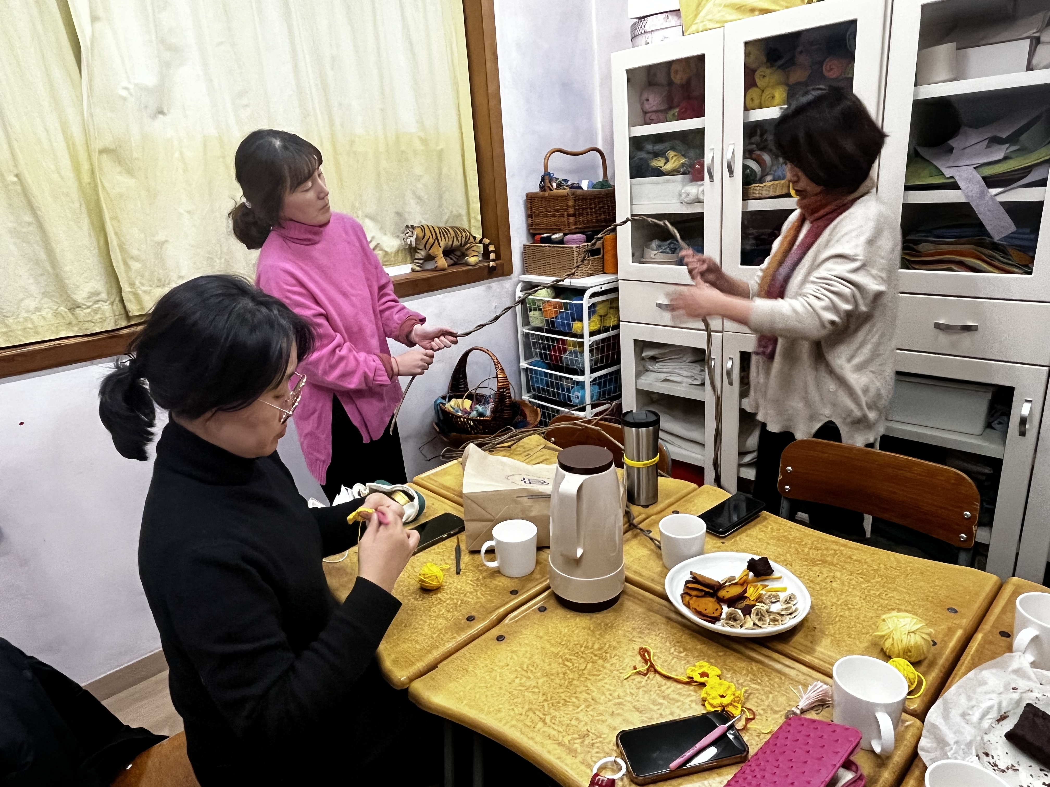 겨울이니 크리스마스 리스를 만들어 보기로 했습니다. 늘 그렇듯이, 수다 떨다 작업을 다 마무리 하진 못했지만 리스에 달 뜨개 꽃이랑 잎사귀를 제법 많이 만들고 식당으로 향했습니다. 마지막 모임이라고 간식 준비해 오신 분들도 계셔서 배가 많이 고프진 않았는데 함께 먹는 식사라 그런지 냠냠 맛있게 남김없이 다 먹었다지요. ^^ 12월에도 만나보자고 하는데~~~ 그래볼까 싶습니다~! ^^